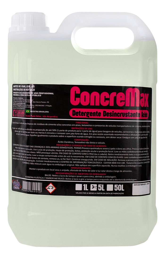 Produto utilizado para limpeza de resíduos de cimento e/ou concreto em pisos, betoneiras e carrocerias de veículos transportadores de cimento, concreto ou calcário..